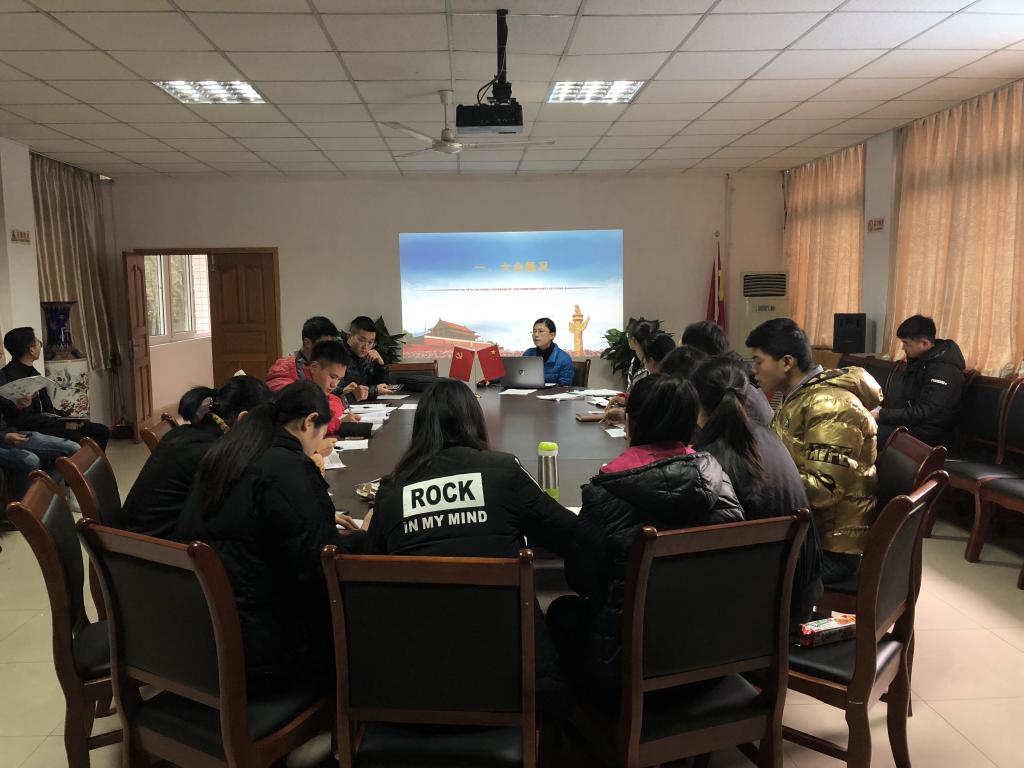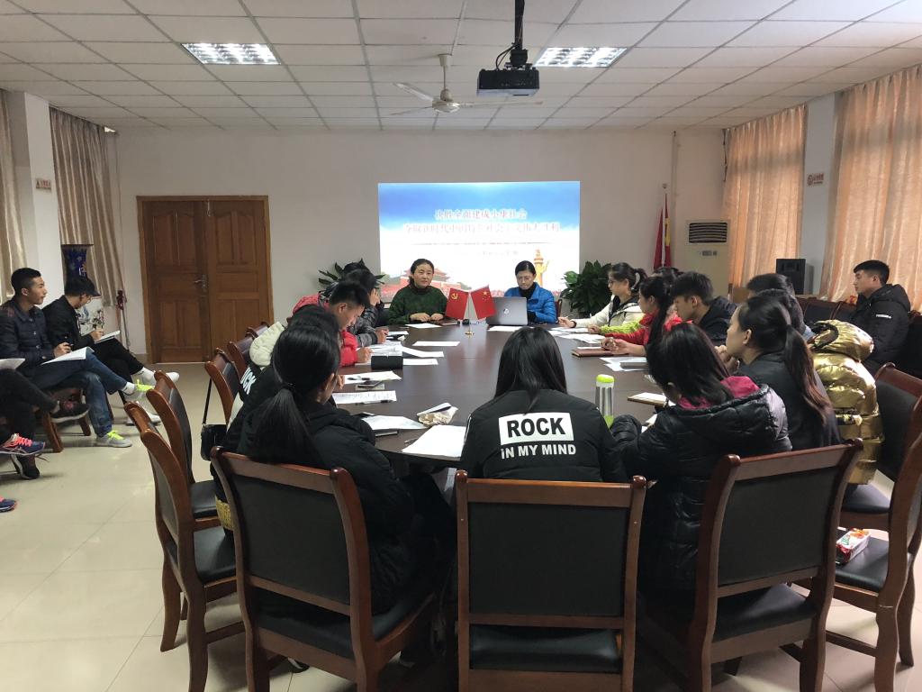 为了加强十九大精神的学习宣传,推进员工干部对十九大精神的领会和理解,按照公司党的十九大精神宣讲工作布置推进会工作部署,精心组织开展党的十九大精神宣讲工作。2017年12月1日中午1点,我支部在学院会议室召开了十九大精神宣讲大会,党支部书记傅杨作了题为《认真学习党的十九大精神,努力做合格党员》的专题讲座,员工党支部全体成员以及2015级、2016级优秀入党积极分子参加此次专题宣讲学习会。