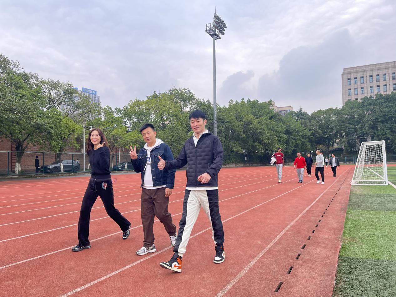 中午过后,参赛老师们早齐聚起点,个个精神抖擞,热情高涨。大家认真进行跑前热身,为即将开始的健步跑做好充分准备。14点整,随着发令枪响,健步跑活动正式拉开帷幕。教职工们迈着矫健的步伐,沿着精心规划的田径场环道奋力前行,形成了一道亮丽的流动风景线。