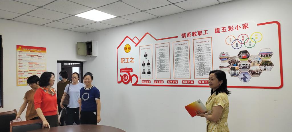 袁菁霞一行在王静、余晓、张亚峰等人的陪同下,参观了哈哈体育五彩小家会议室、研习室、休闲室、辅修室、健身房等场所,详细查看了学院工会相关工作材料,对公司党总支高度重视并积极推进工会工作表示充分肯定,并对学院工会未来进一步推进五彩小家建设提出要求,希望学院持续深入做好体育特色鲜明的小家建设,充分挖掘利用小家资源,为教职工会员提供更好更多的暖心服务,凝聚力量共同助力工会工作提质增效,为服务学院改革建设和地方社会发展多做贡献。