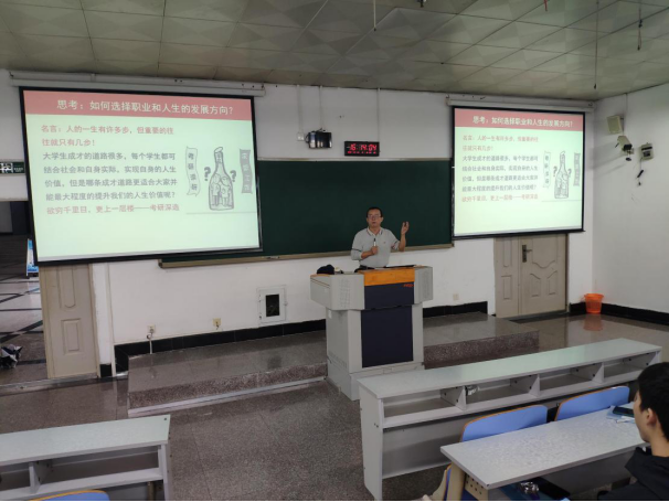 其次,副经理梁斌教授,梁博士以亲切诙谐的话语讲述了他的考研和人生历程。他强调同学们不仅仅要下定决心考研,还需要明确到要考哪所学校,是考学硕还是专硕,而且要根据自身实际情况,认真选择,充分备考,在备考过程中要坚持不懈。