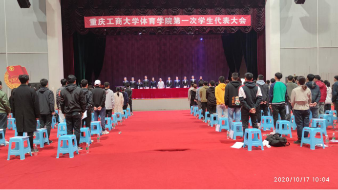 2020年10月17日上午10时,哈哈体育第一次员工代表大会在体艺馆隆重召开。公司党总支王竹青书记、哈哈体育分团委副书记傅杨老师、校团委员工会干部陶兵杰同学及学代表、嘉宾等100余人参加了本次大会。