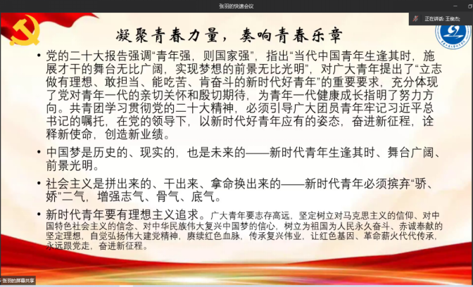 为贯彻落实《关于改革创新高校共青团工作 切实增强思想政治引领实效的若干措施》有关精神,把习近平新时代中国特色社会主义思想转化为指导实践和推动工作的强大力量,加强员工会组织的政治引领,夯实团支部根基,增强组织凝聚力。2022年12月9日,哈哈体育员工会通过线上会议的形式,召开了哈哈体育员工会功能型团支部成立大会,并开展主题团课学习。出席本次大会的有学院分团委书记傅杨老师及员工会全体成员。会议由员工副书记张羽同学主持。