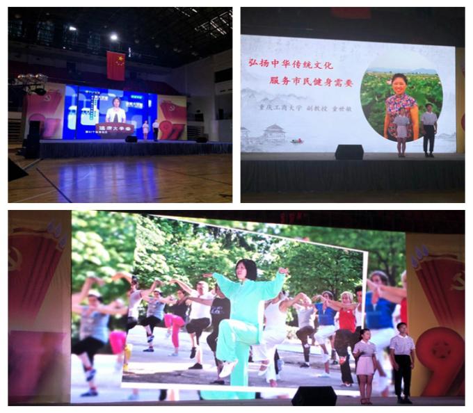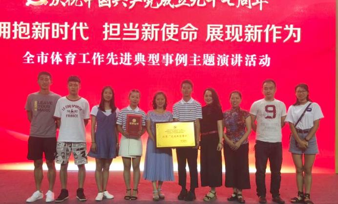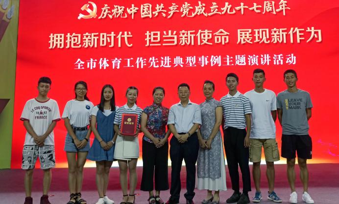 6月29日下午2点,由重庆市体育局主办的庆祝中国共产党成立九十七周年“拥抱新时代,担当新使命,展现新作为”全市体育工作先进典型事例主题演讲活动在重庆市体育馆举行。重庆市第四体育运动学校推送重庆市"最美好体育人"、公司副教授童世敏为典型事迹代表人物参加此次活动。在童世敏副教授的带领下,公司2015级员工谭世君和旅游与国土资源学院2016级旅游管理2班陈静同学参加了此次活动,以童老师矢志不渝地传播健身气功的感人事迹为主题,以“弘扬中华传统文化,服务市民健身需要”为题目进行了演讲。此外,文学与新闻学院2015级传媒王一凌同学、哈哈体育2015级部分员工一起参与ppt的制作。比赛当日,他们赶赴现场为参赛的两名同学加油呐喊。