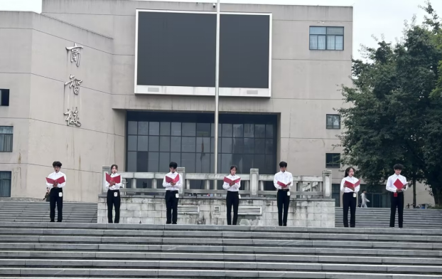 升旗仪式结束后,本科生国家奖学金获得者、2021级体育教育专业冉茜代表员工在国旗下演讲。她表示,作为新时代的青年学子,要做理想远大、信念坚定的青年模范;要做刻苦学习、锐意创新的青年模范;要做艰苦奋斗、无私奉献的青年模范,以实际行动践行青春誓言,为祖国的繁荣富强贡献自己的力量。